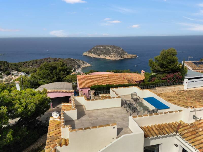 Nestled in the coveted enclave of Portixol, Jávea, this exquisitely presented 4-bedroom villa epitomizes luxury living with its unrivaled 360º sea and mountain views. Designed to captivate and inspire, this property enjoys both morning and afternoon sun throughout the year, creating a luminous and inviting ambiance in every corner.