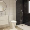 Fully fitted bathrooms with toilet, vanity unit, mirror, shower with rain effect and screen panels.