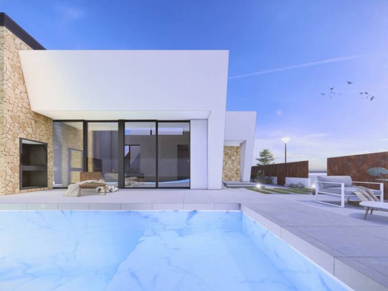 New Build villas with 3 bedroom, 2 bathrooms, with wonderful private swimming pool, large roof solarium, sun kissed front, side and rear terraces and off road parking.