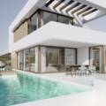 All villas have 3 bedrooms, 3 bathrooms, guest toilet, open plan kitchen with living room, fitted wardrobes, basement with double garage, private garden with swimming pool and sea views.