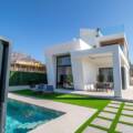 Modern villas has 3 bedrooms, 3 bathrooms, open-plan kitchen with spacious living room, fitted wardrobes, terrace, solarium, private garden with the swimming pool and parking space.
