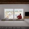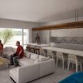 There are large sliding windows that get hidden inside the walls cavity when open, providing a continuos experience towards the exterior pool area, where there´s a covered area (by concrete roof and masonry walls) that makes the most enjoyable outdoor space.