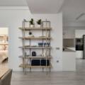 The doors and fitted wardrobes are lacquered in white and the floor is made of laminated wood.