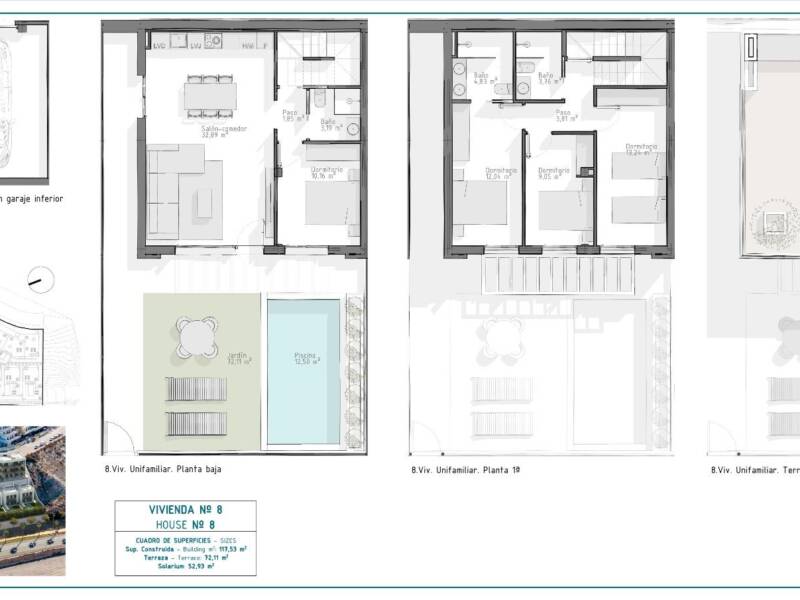 New Build complex consist of 36 apartments with 3 and 2 bedrooms distributed in 4 modern blocks, equipped with 2 communal swimming pools and community garage with parking space and storage room for each property; and 10 elegant villas of 4 bedrooms and 3 bathrooms, each one with its own private pool.