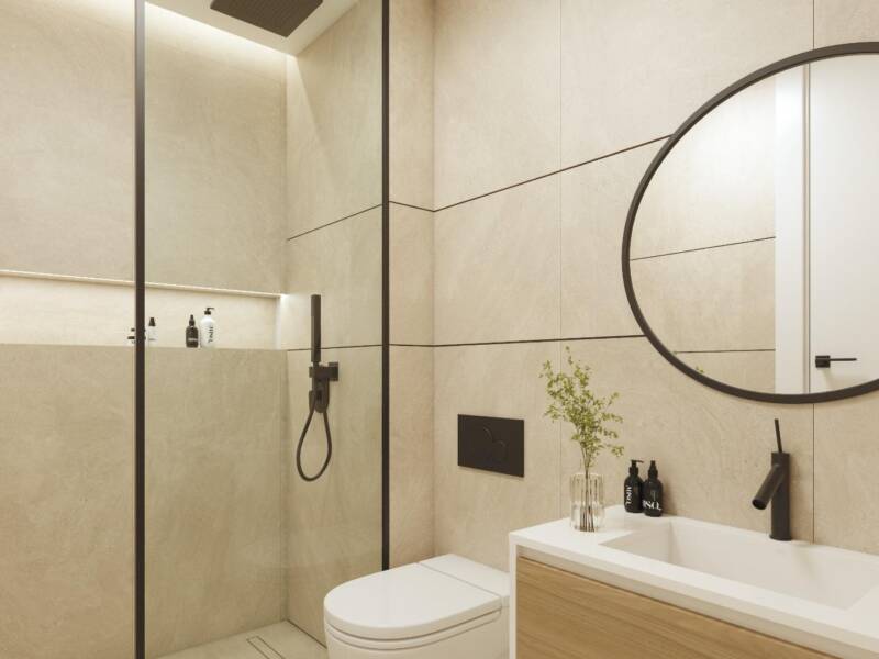 Modern properties with 2 and 3 bedrooms, 2 bathrooms, a bright living-dining room with integrated kitchen and a cosy terrace.