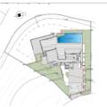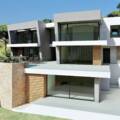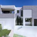 New Build modern villa design combines in an elegant and functional way, modern and Mediterranean architecture. On the façade, characterized by large geometrical shapes based on diagonal lines, the colour white dominates and the use of natural stone allows it to blend in with its environment.