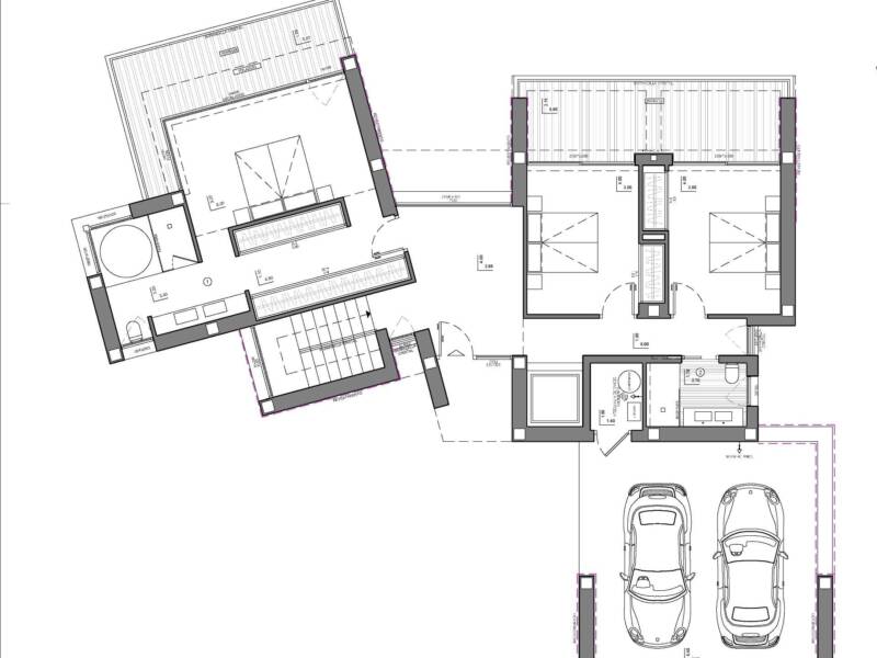 The “night area”, made up of two bedrooms, a suite with bathroom, walk-in wardrobe and a private terrace and a shared bathroom are on this floor. All the bedrooms have access to a terrace from where you can enjoy one of the best sea views on the Costa Blanca. Waking up while watching the sun rising on the horizon of the Mediterranean is one of the many luxuries this villa has to offer you.
