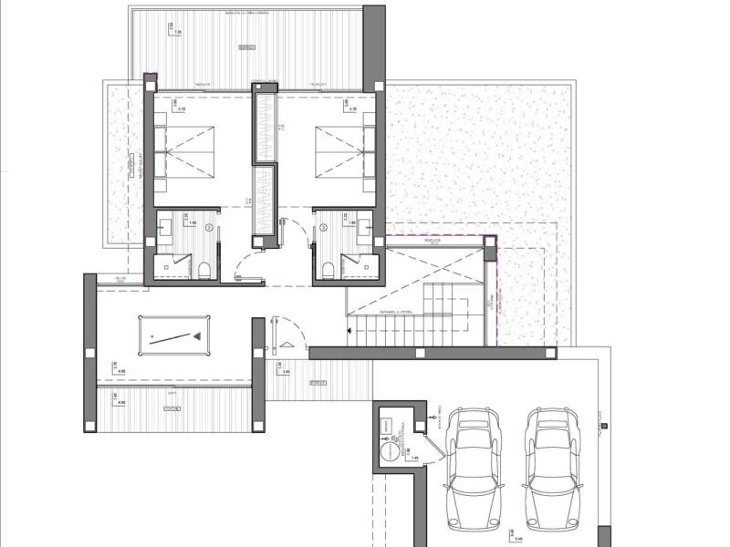 The villa has a private parking area on the top floor for up to two vehicles, since access to the villa is located on the same floor.