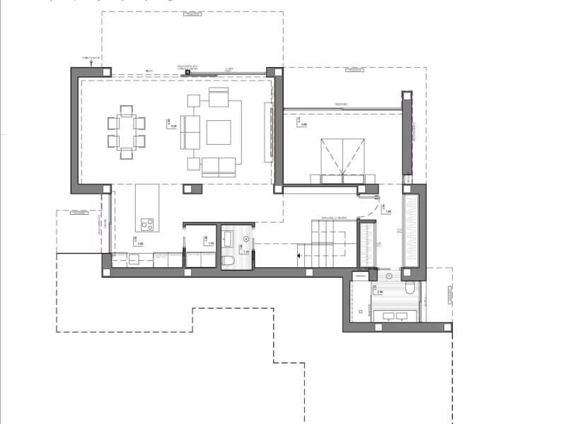 Its modern architecture, based on straight lines, combined with the Mediterranean style blends perfectly with its surroundings. This villa has been completely designed to enhance functionality and comfort, without cutting back an ounce on design. The villa is surrounded by a large garden with indigenous plants and elements. A feature that particularly stands out is the natural stone walls.